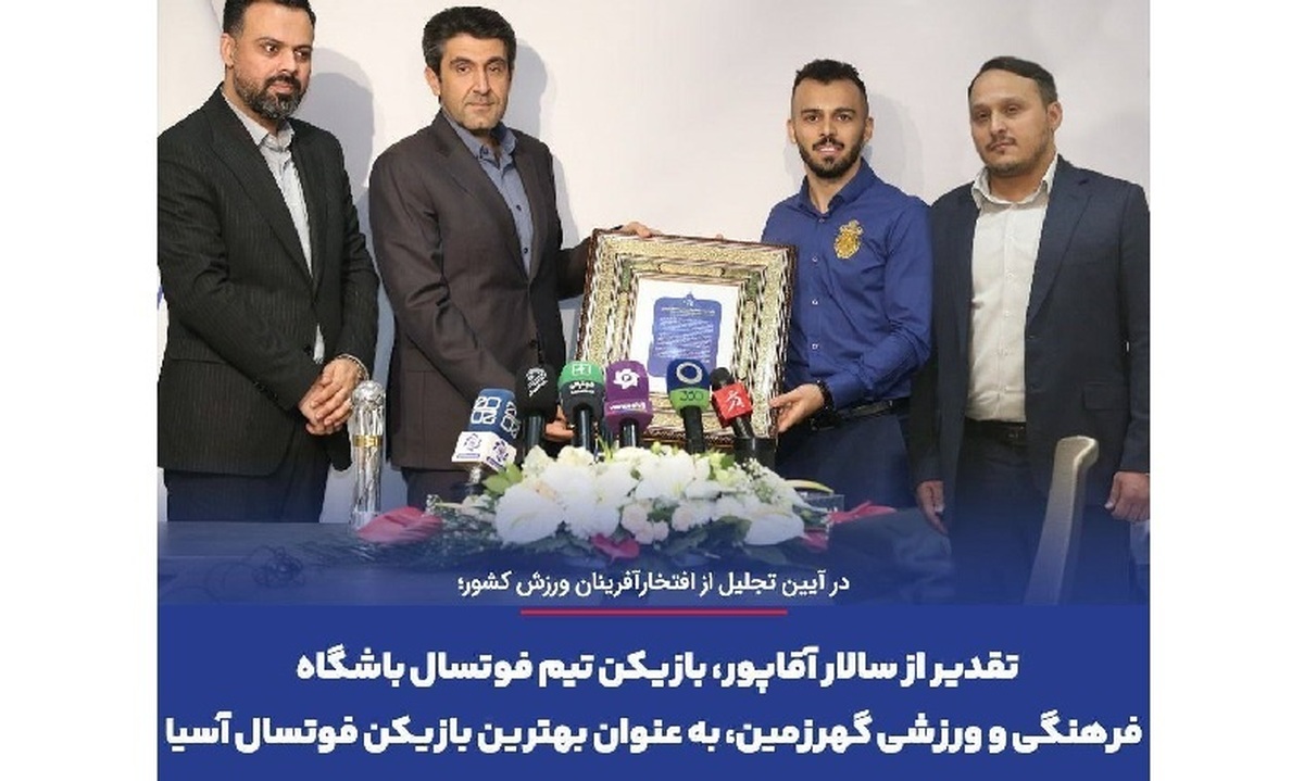 گفتنی است، باشگاه فرهنگی و ورزشی گهرزمین با داشتن دو بازیکن، سالار آقاپور و مسلم اولادقباد، تنها باشگاه در تاریخ فوتبال ایران است که همزمان دو نماینده در جوایز فوتسال آسیا داشته است. همچنین به دلیل فشردگی برنامهها و حضور آقاپور در رقابتهای فیفا دی، مراسم تقدیر از وی بهزودی در سیرجان با حضور مسئولان و رسانهها برگزار خواهد شد./روابطعمومی و امور بینالملل شرکت معدنی و صنعتی گهرزمین