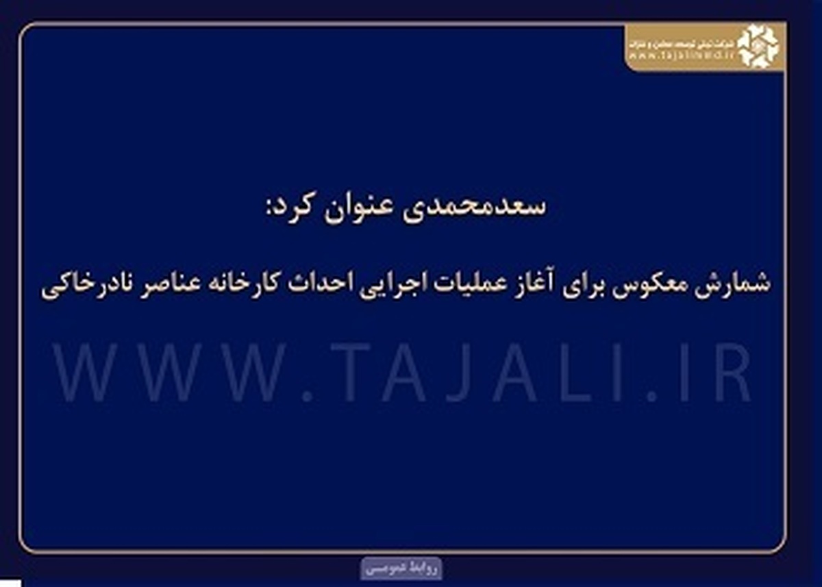 وی از آمادگی شرکت تجلی توسعه معادن و فلزات برای آغاز عملیات اجرایی احداث کارخانه عناصر نادر خاکی ظرف یکی دو هفته آینده خبر داد و تأکید کرد تمام طراحی این کارخانه توسط متخصصان ایرانی انجام شده است.
