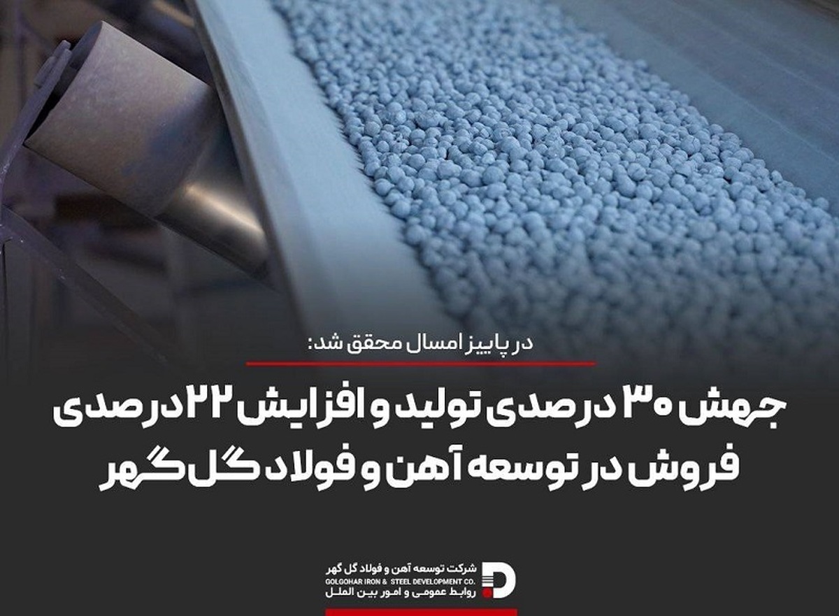 در سه‌ماهه پاییز امسال، شرکت توسعه آهن و فولاد گل‌گهر عملکردی موفق در حوزه تولید و فروش به نمایش گذاشت و نسبت به مدت مشابه سال گذشته، رشد ۳۰ درصدی تولید و افزایش ۲۲ درصدی فروش را محقق کرد.