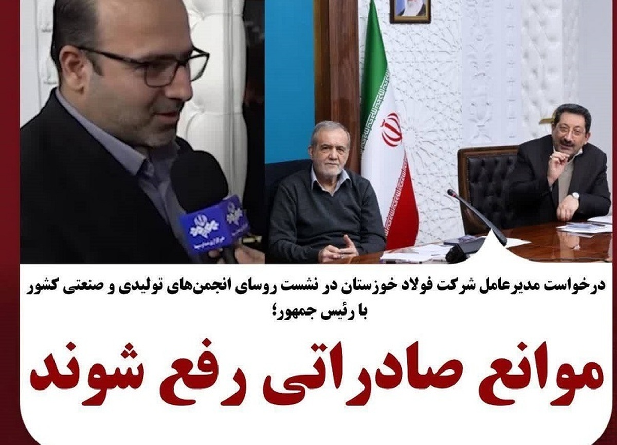 مدیرعامل شرکت فولاد خوزستان در نشست روسای انجمن‌های تولیدی و صنعتی با رئیس‌جمهور کشور خواستار شد؛