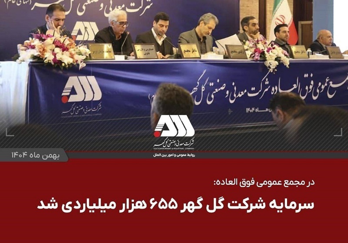 در پایان این مجمع، با رای سهامداران، افزایش سرمایه گل گهر از ۵۵۵ هزار میلیارد ریال به ۶۵۵ هزار میلیارد ریال ( ۳۸ هزار میلیارد ریال از محل سود انباشته و ۶۲ هزار میلیارد ریال از محل مطالبات حال شده و آورده نقدی سهامداران) به تصویب رسید./روابط عمومی شرکت معدنی و صنعتی گل گهر